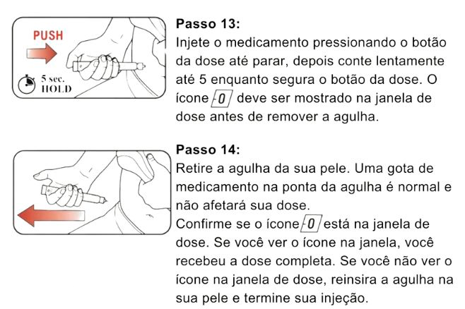 Cada caneta é de uso único e deve ser descartada após a aplicação.